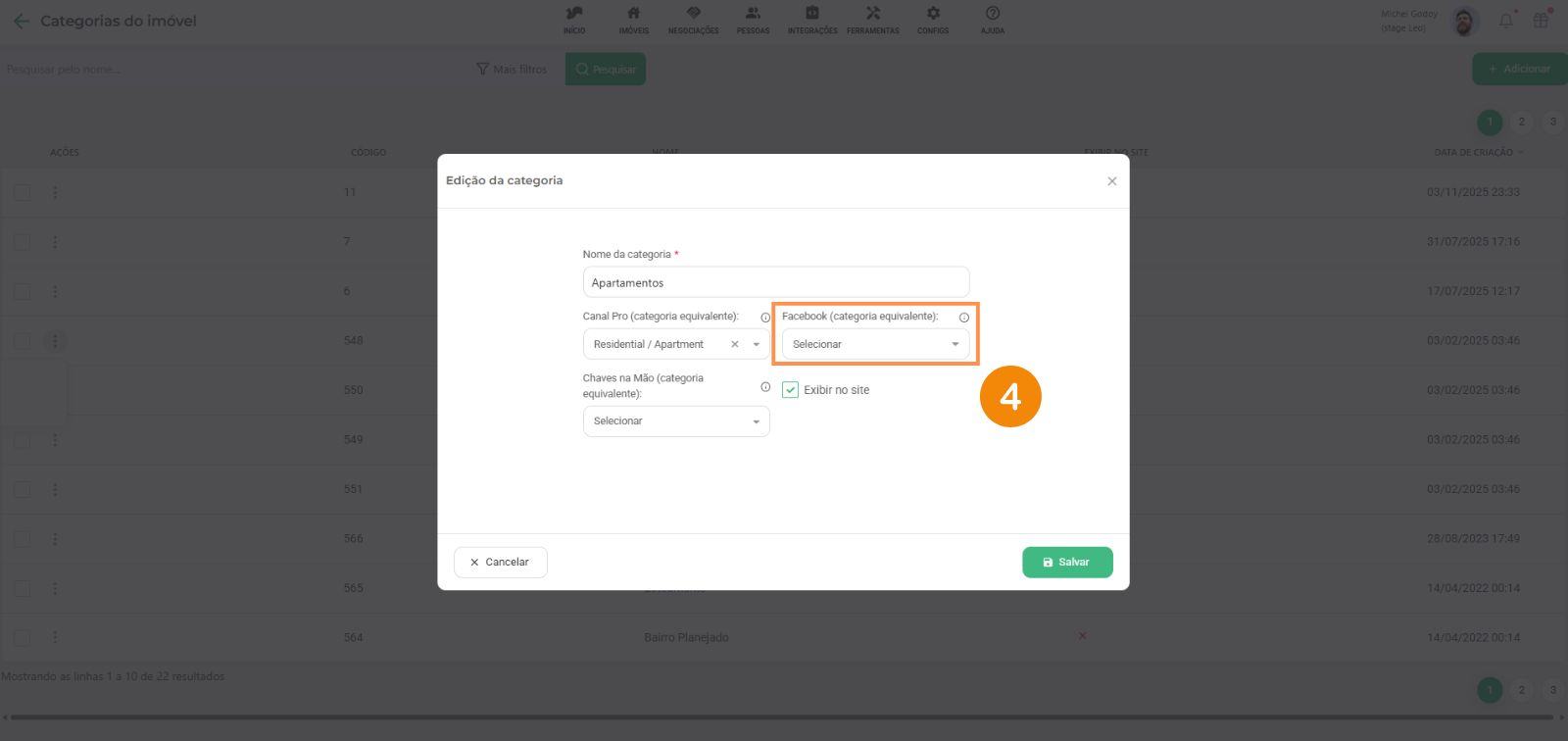 Obs: É fundamental configurar corretamente as categorias equivalentes antes de enviar os imóveis ao Facebook.