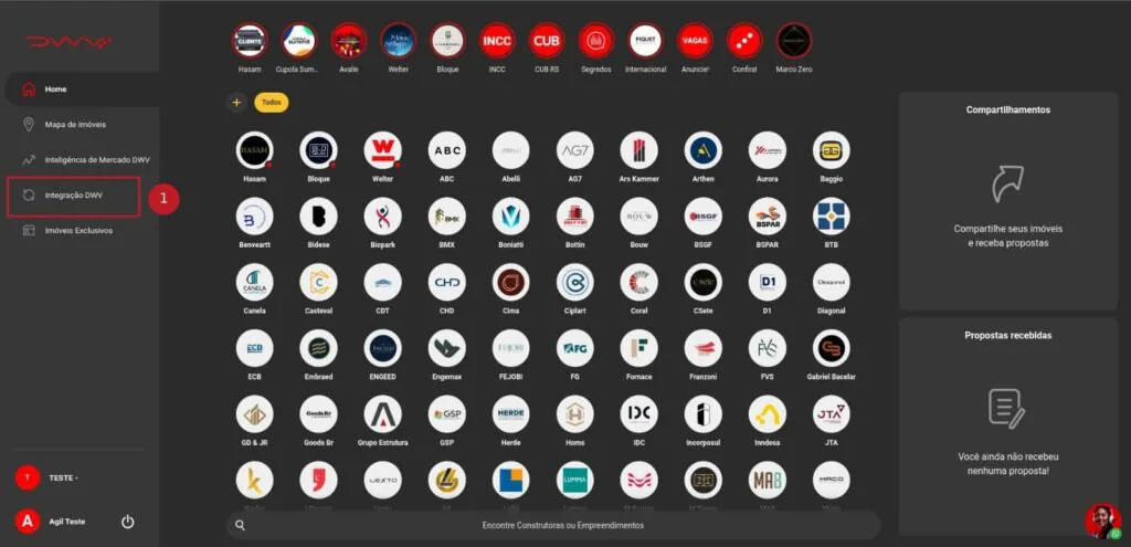 1 – Na página inicial depois de efetuar o login, abra o menu lateral esquerdo e clique em “Integração DWV”;