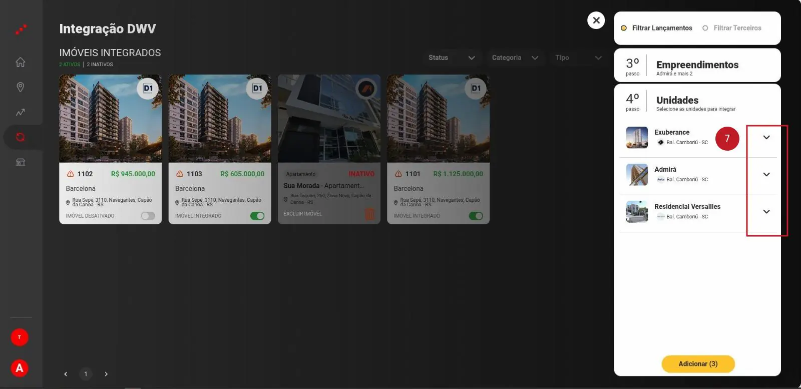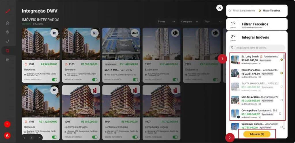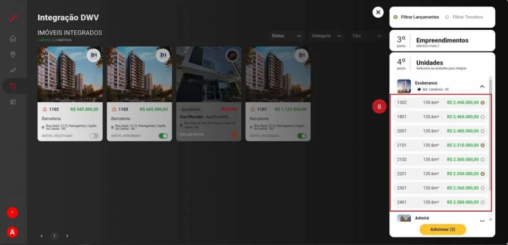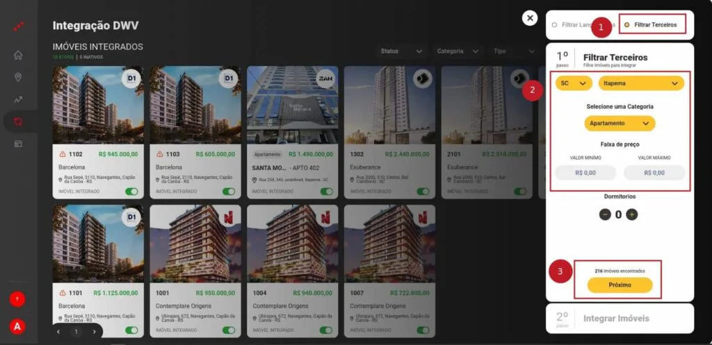 1 – Selecione os imóveis que deseja integrar com a Ágil;