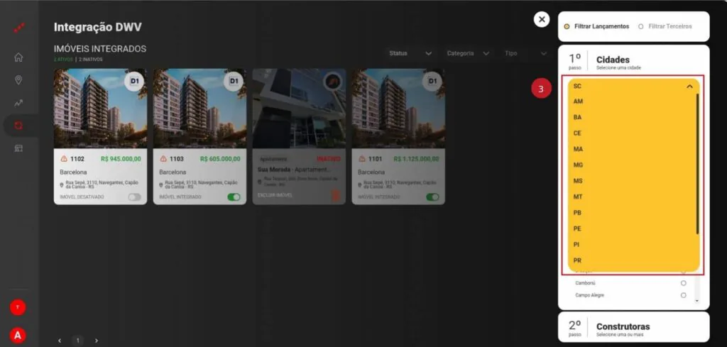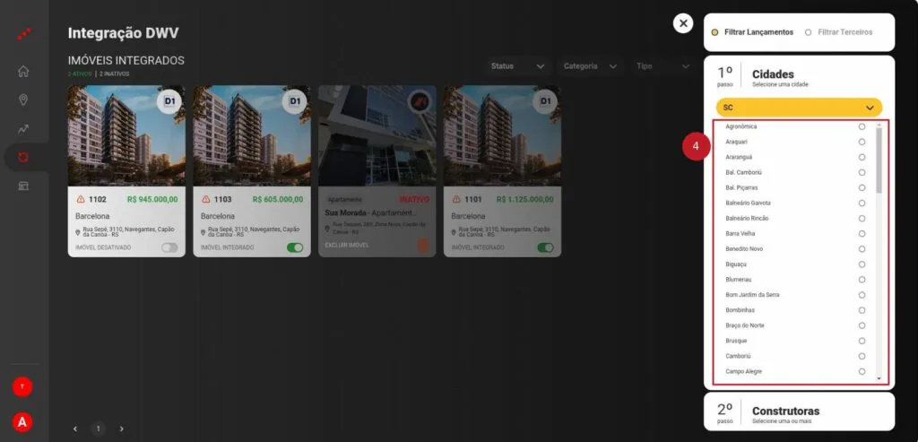 4 – Selecione qual a cidade dos imóveis;