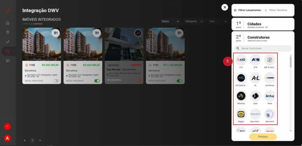 5 – Selecione a construtora e clique em “próximo”;