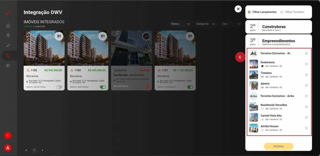 6 – Selecione o empreendimento e clique em “próximo”;