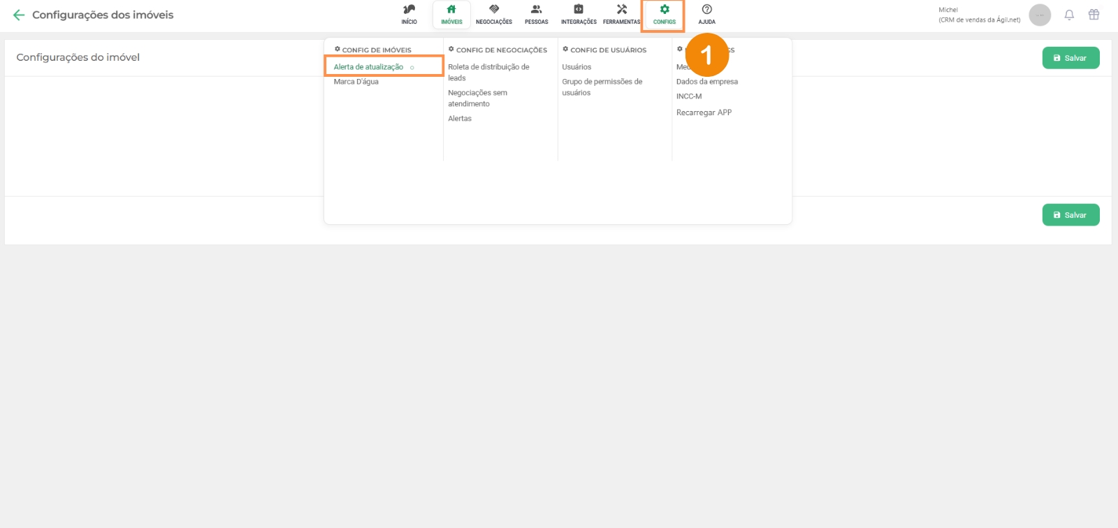 1 – Clique na aba “Imóveis” e depois “Alerta de atualização“;