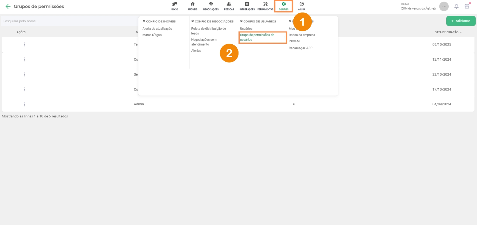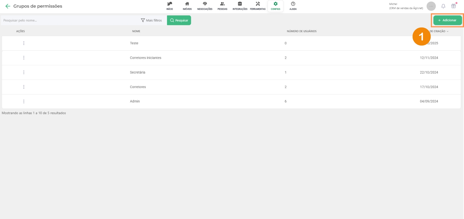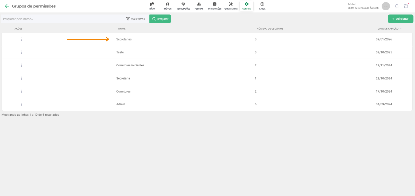 Os Grupos de Permissões são grupos que você pode criar concedendo diversas permissões específicas aos usuários do Ágil. Através dessa ferramenta, você pode criar um grupo de permissões específico para corretores, secretárias ou agenciadores por exemplo, delimitando exatamente as permissões que eles tem no Ágil.