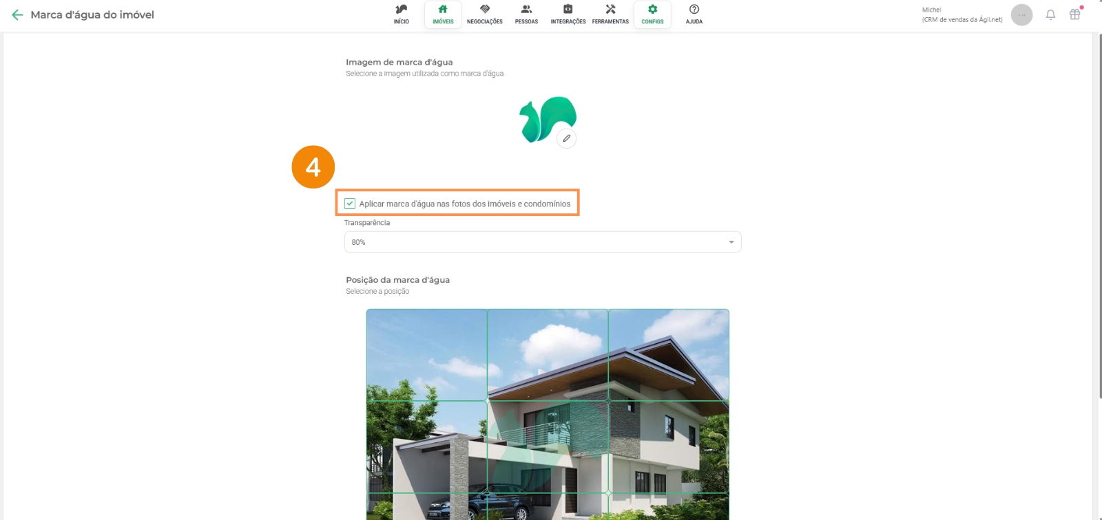 Obs.: Após a marca d’água estar configurada todas as novas fotos cadastradas em imóveis e condomínio terão marca d’água aplicada.