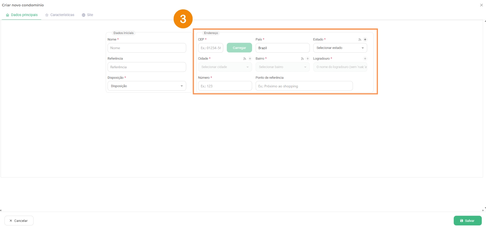 3 – Preencha o endereço do condomínio;