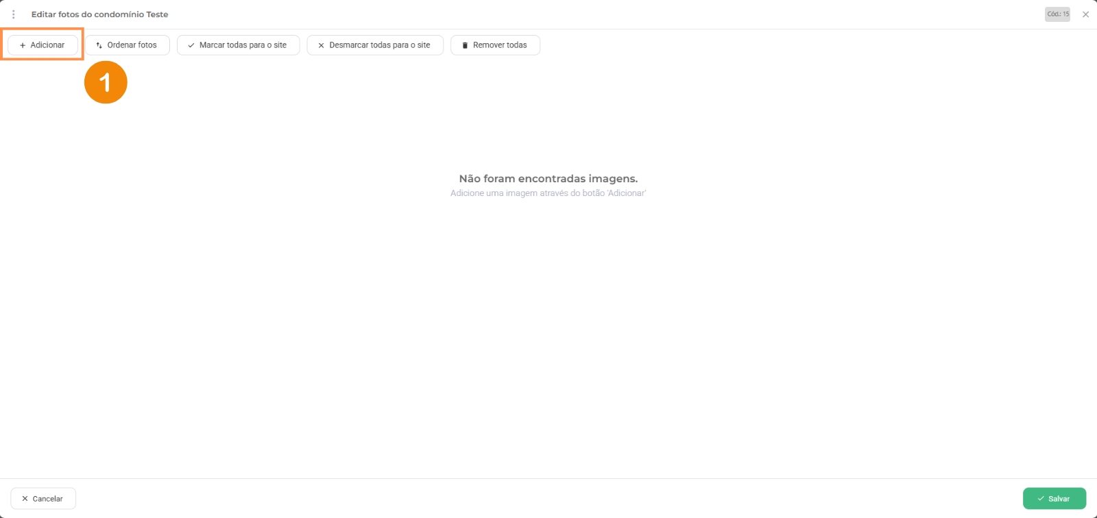 Como adicionar fotos no condomínio cadastrado?
