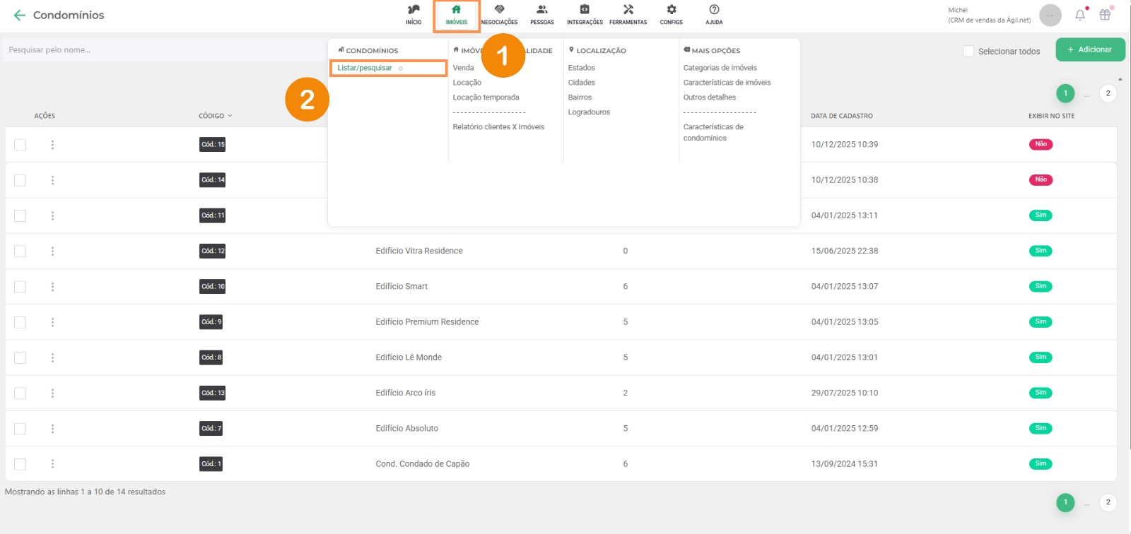 Para acessar a aba de condomínios siga o passo a passo abaixo: