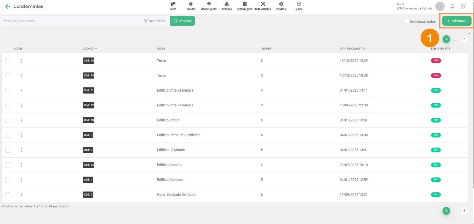 1 – Na área de condomínios, clique em “adicionar“: