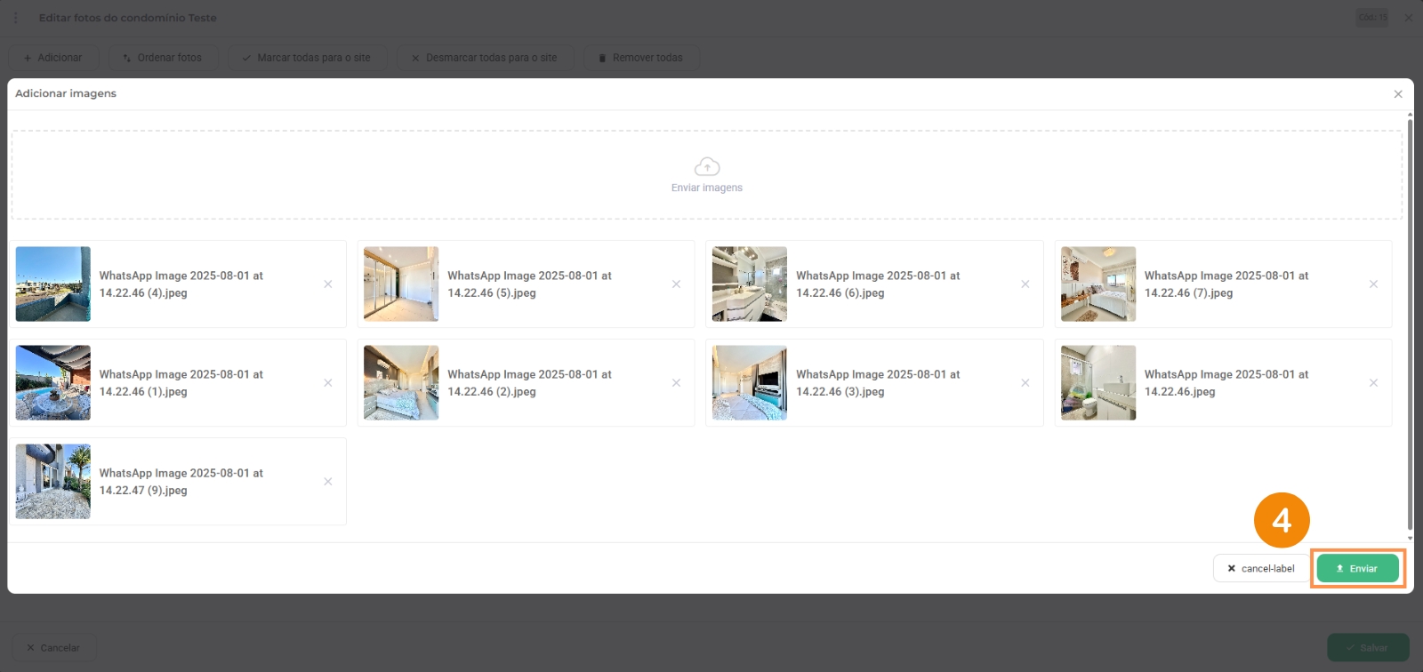 4 – Depois que selecionar as fotos, aguarde todas carregar e clique em “Enviar“;